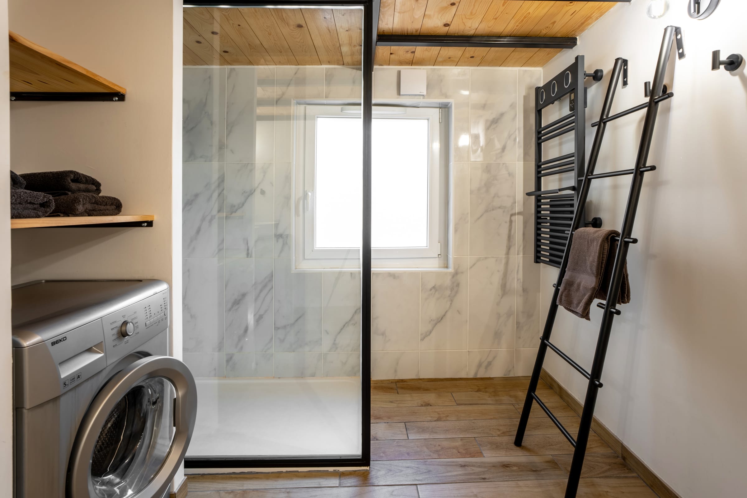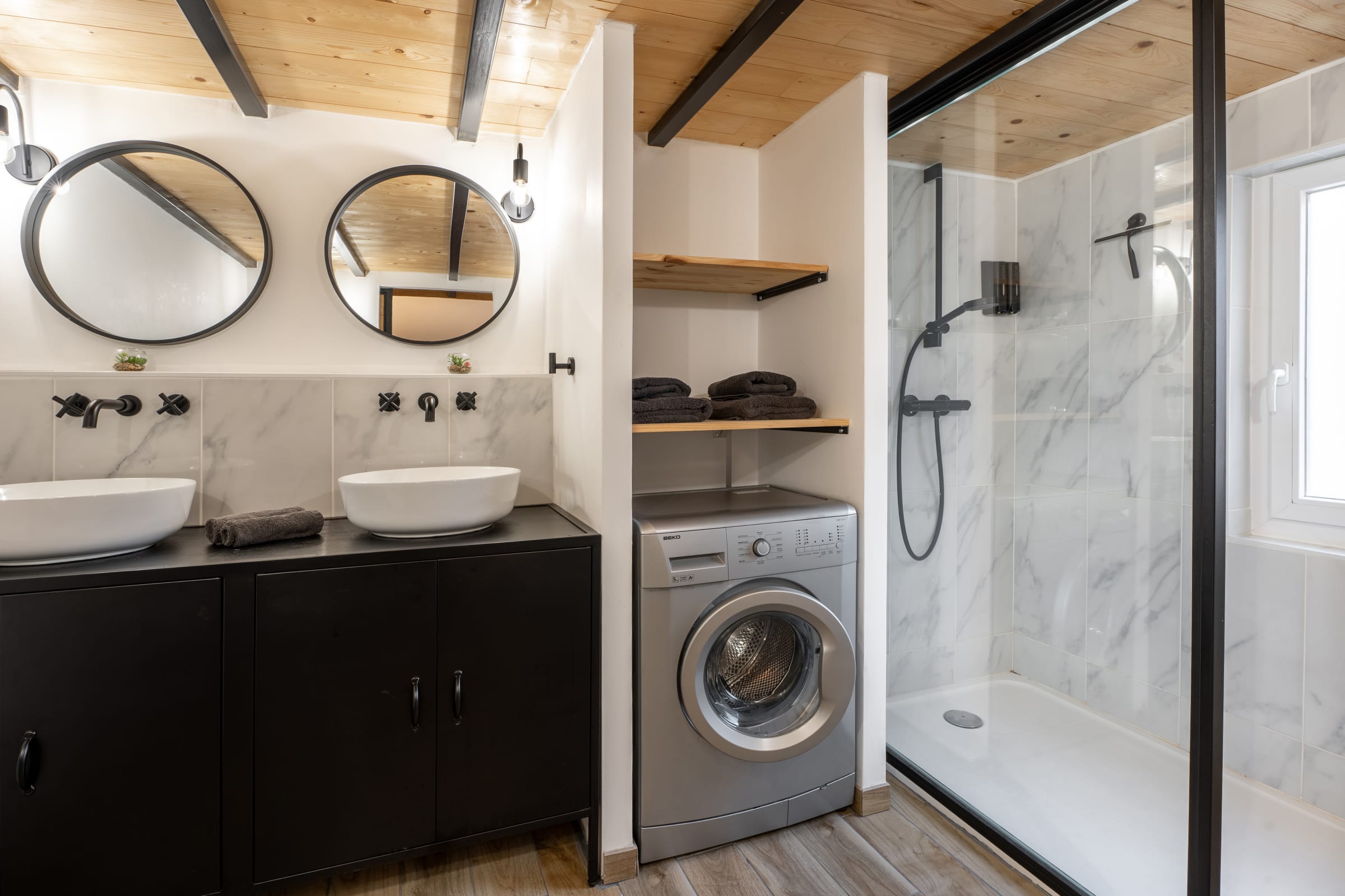 La mezzanine est équipée d'un lit double confortable et de rangements pour vos effets personnels. La salle de bain est équipée d'une douche italienne pour se détendre après une journée bien remplie.