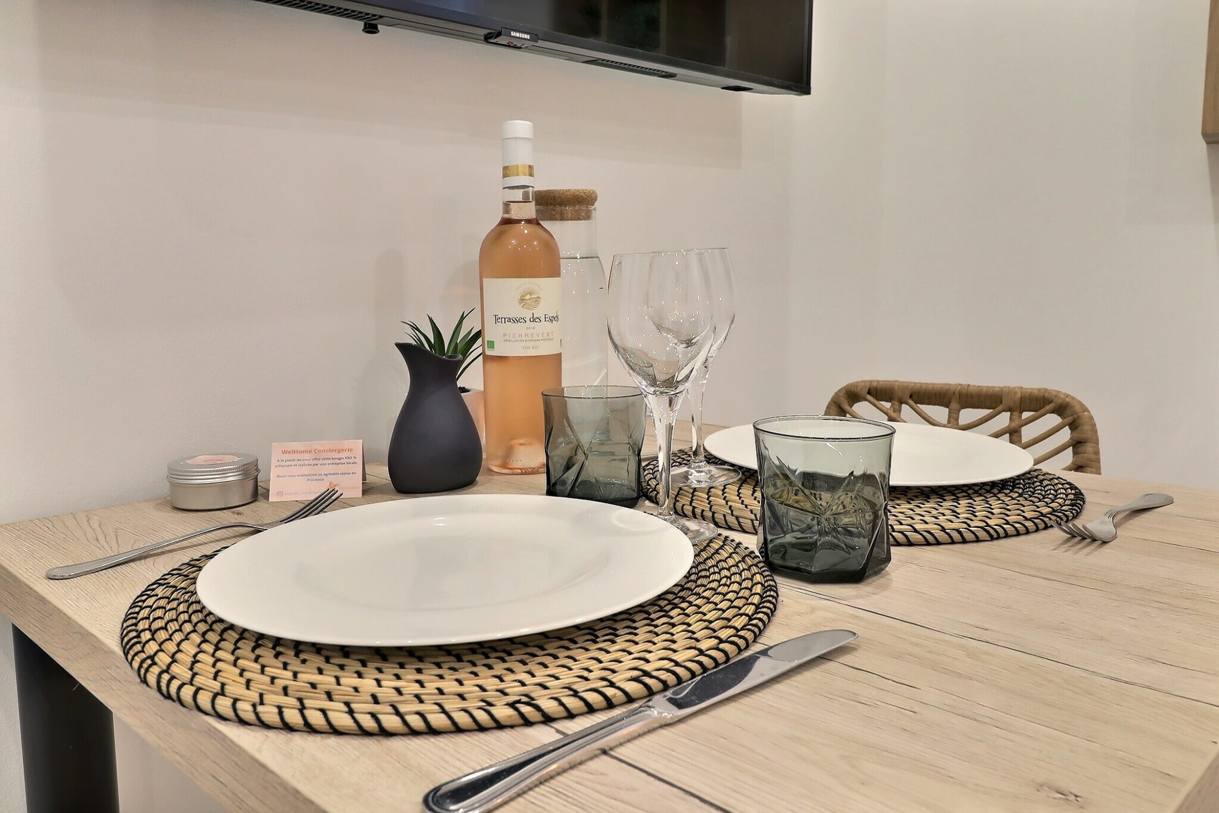 Tout l’appartement a été décoré avec soin et équipé avec des prestations de qualité : climatisation réversible, TV connectée, Wi-Fi fibre, double vitrage, éclairage par spots intégrés, linge de lit et linge de toilette fournis (serviettes, draps de bain, tapis de bain). Une place de parking en sous-sol sécurisé à proximité est incluse dans le prix de la nuitée.