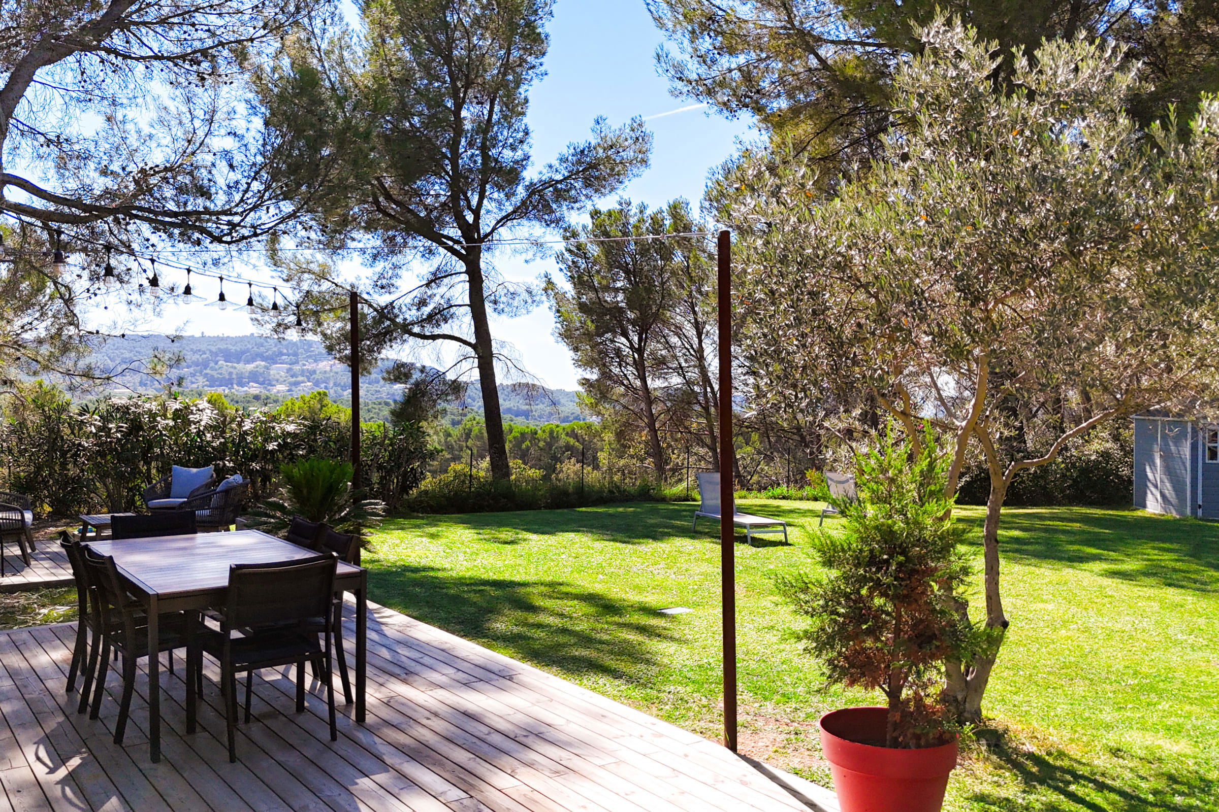 À l’extérieur, profitez d’une superbe terrasse de 45 m², aménagée pour vos moments de détente ou vos repas en plein air. Elle est équipée d’une grande table avec 8 chaises, d’un sofa 4 places, d’un barbecue à gaz, de 2 bains de soleil. Un espace idéal pour se relaxer et profiter du soleil provençal en toute intimité.